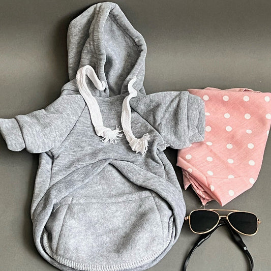 Hoodie gris 3 corazones para perro pequeño a mediano