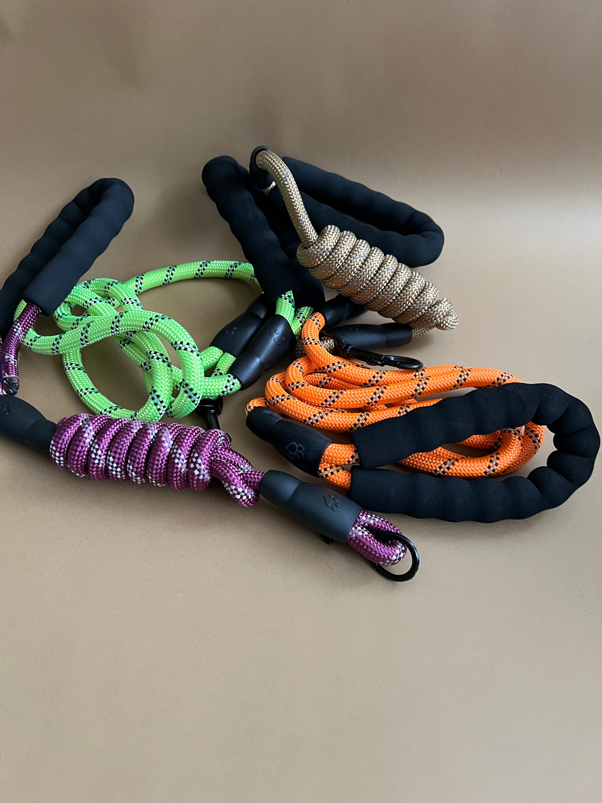 Una correa para pasear a tu perro de raza pequeña a grande. Es muy resistente, de 1.5 metros de largo. Las tenemos en varios colores increíbles. La manilla es acolchada para que no dañe tus manos.